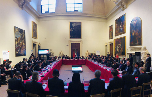 3月22日,國(guó)家主席習(xí)近平對(duì)意大利進(jìn)行國(guó)事訪(fǎng)問(wèn)期間,作為中意務(wù)實(shí)合作三大機(jī)制性會(huì)議的中意企業(yè)家委員會(huì)第六次會(huì)議在羅馬召開(kāi),習(xí)近平主席和意大利總統(tǒng)馬塔雷拉共同接見(jiàn)了中意企業(yè)家代表。中國(guó)建材集團(tuán)董事長(zhǎng)宋志平受邀參加接見(jiàn)活動(dòng),聆聽(tīng)了習(xí)近平主席和馬塔雷拉總統(tǒng)的演講,并在中意企業(yè)家委員會(huì)議上發(fā)言。意大利經(jīng)濟(jì)發(fā)展部副部長(zhǎng)米凱萊﹒杰拉奇、中國(guó)商務(wù)部歐洲司司長(zhǎng)周曉燕、中國(guó)機(jī)電商會(huì)會(huì)長(zhǎng)張鈺晶、中意企業(yè)家代表出席會(huì)議。